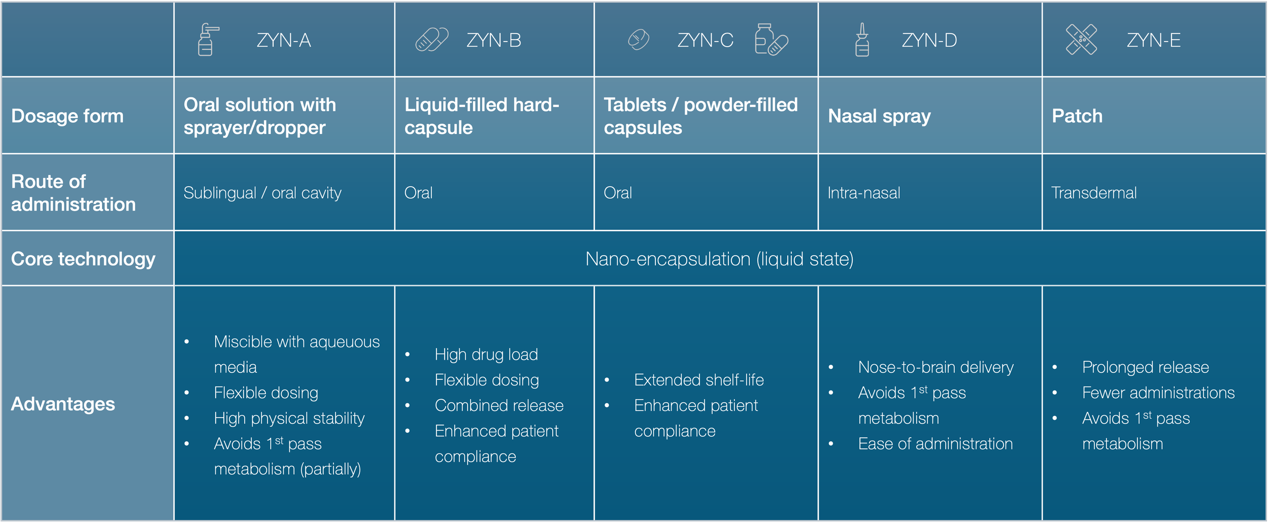 The ZYNDIKATE® platform enables a variety of dosing formats: